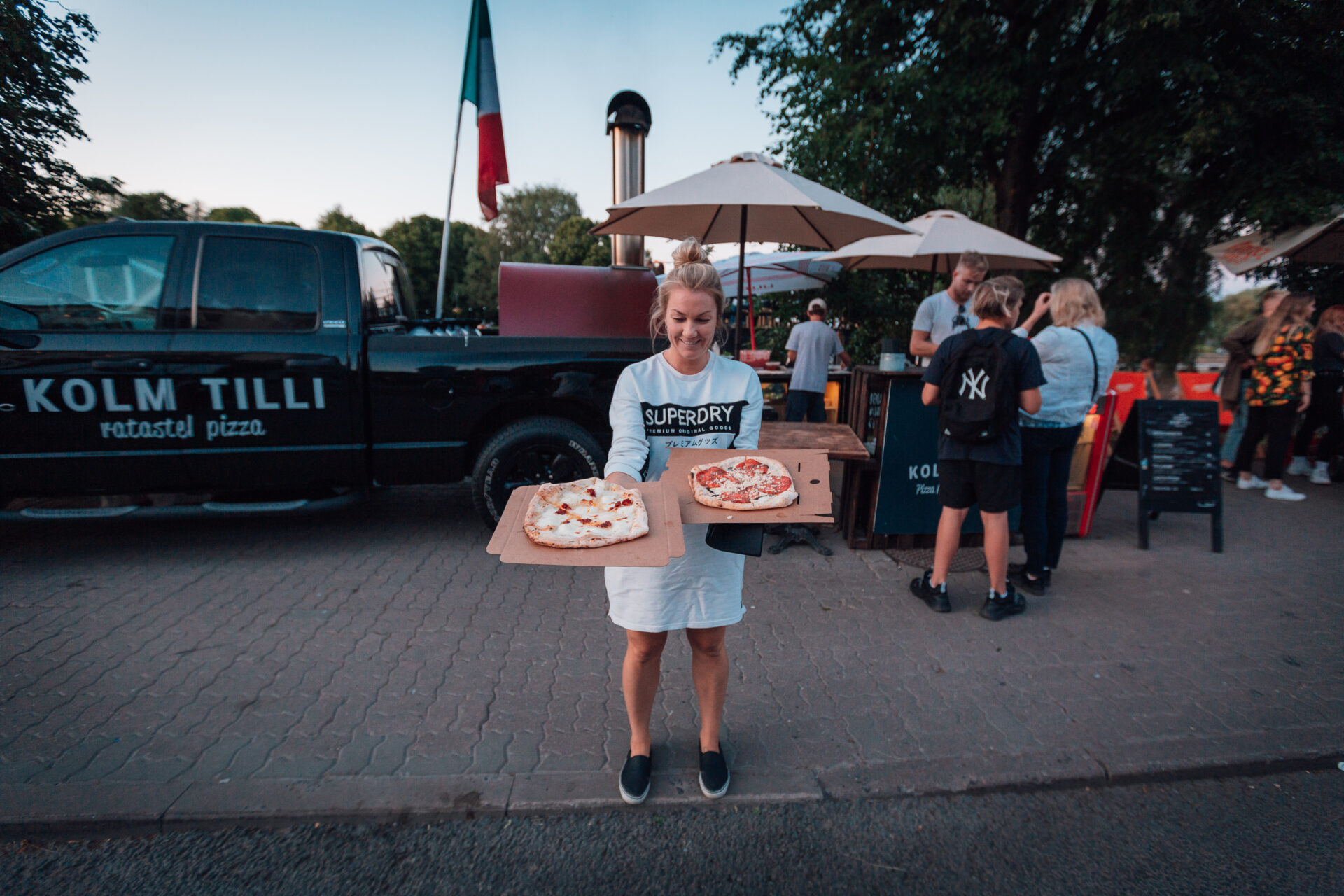 “Ratastel Pizza” on meie liikuv pizzaauto, mis võimaldab igaühel proovida Kolm Tilli imelisi pizzasid ka väljaspool Tartu Aparaaditehases asuvat restorani. Tegeleme Napoli-stiilis pizzade valmistamisega ning kasutame selleks spetsiaalset ahju ainult elava tulega.